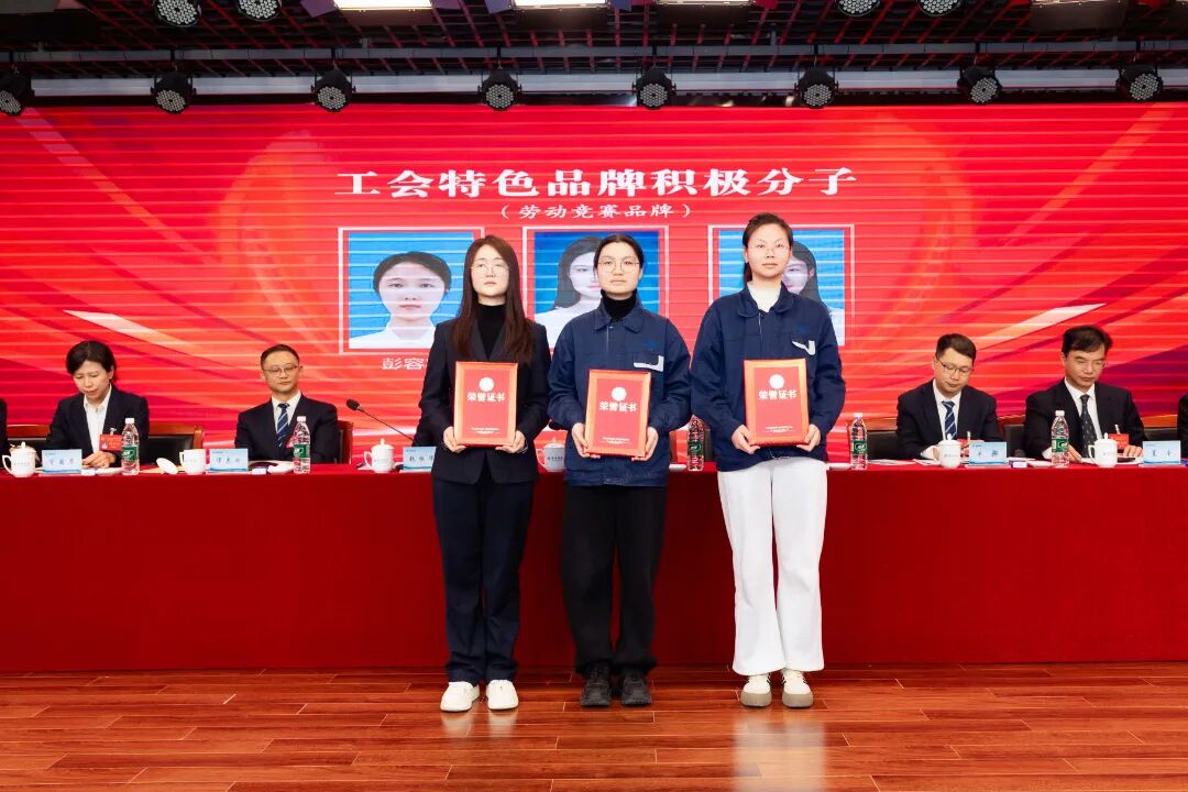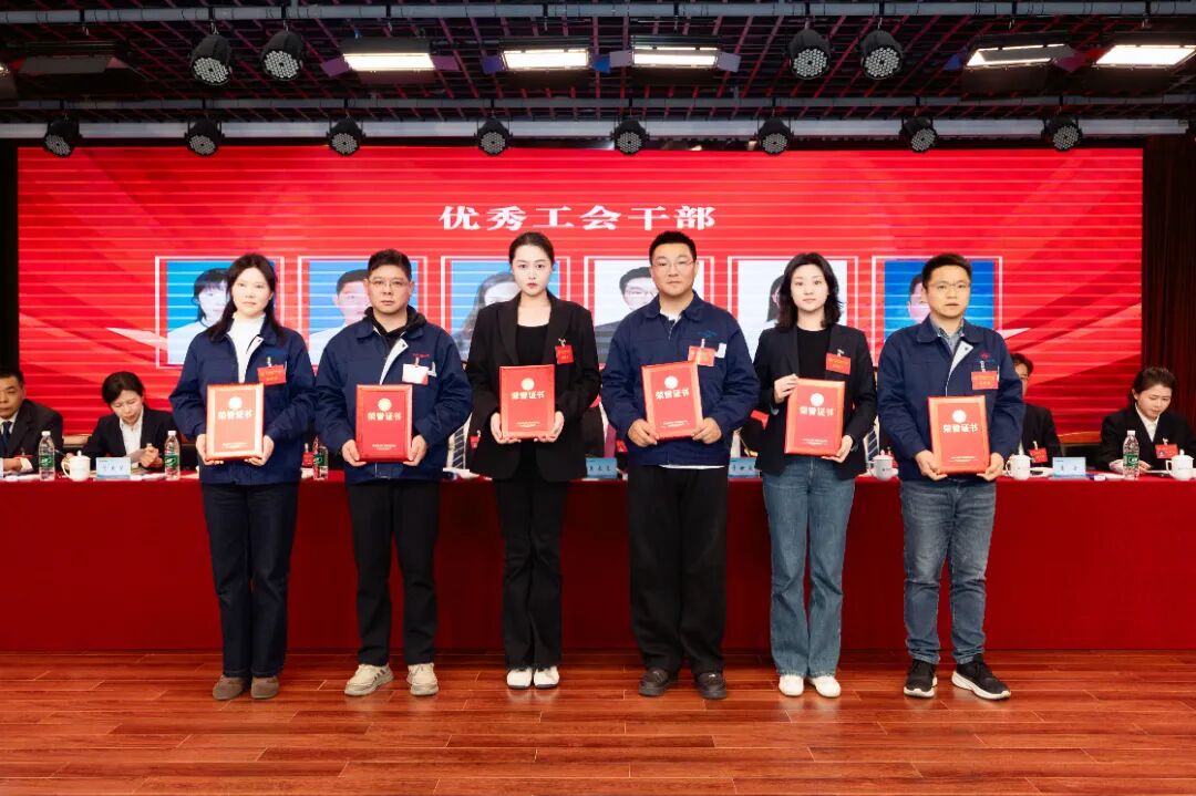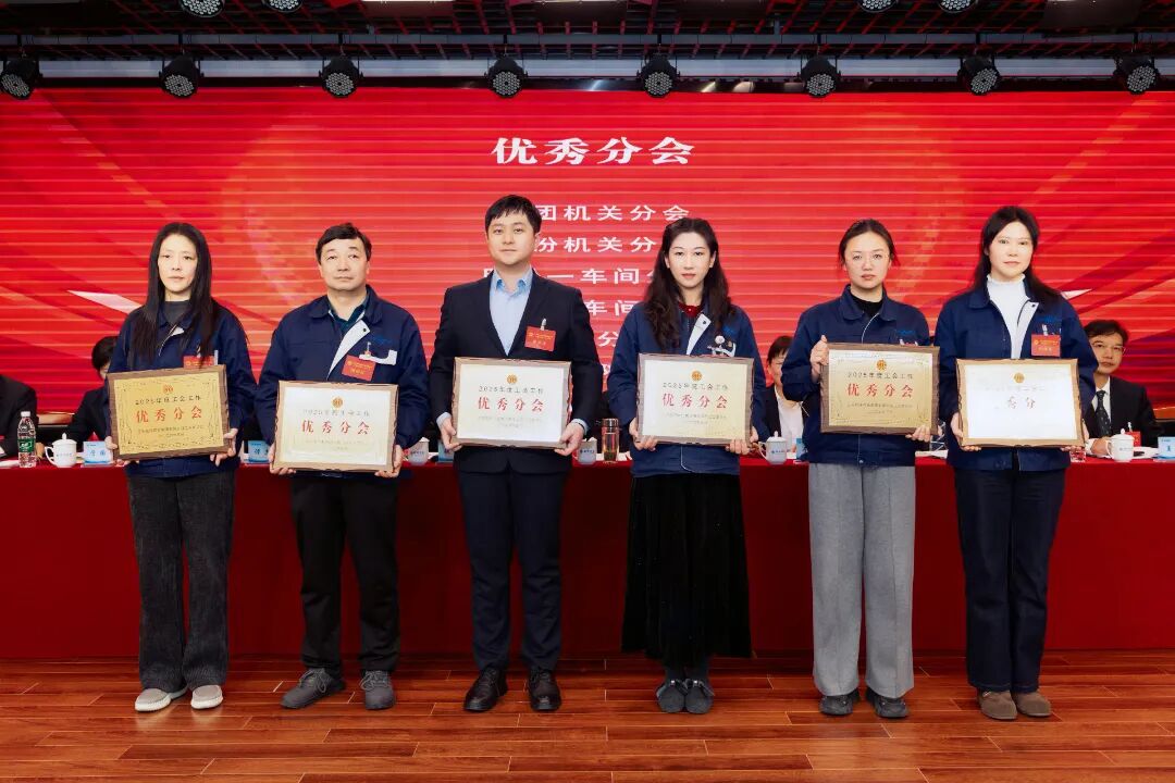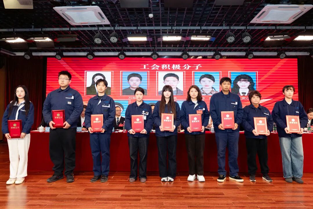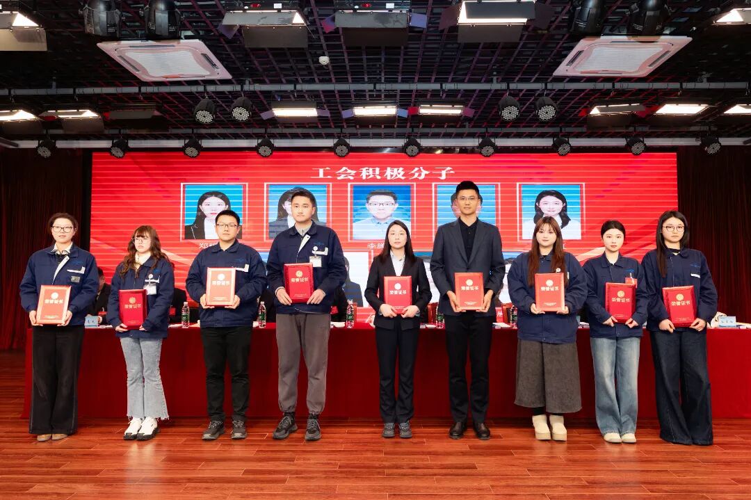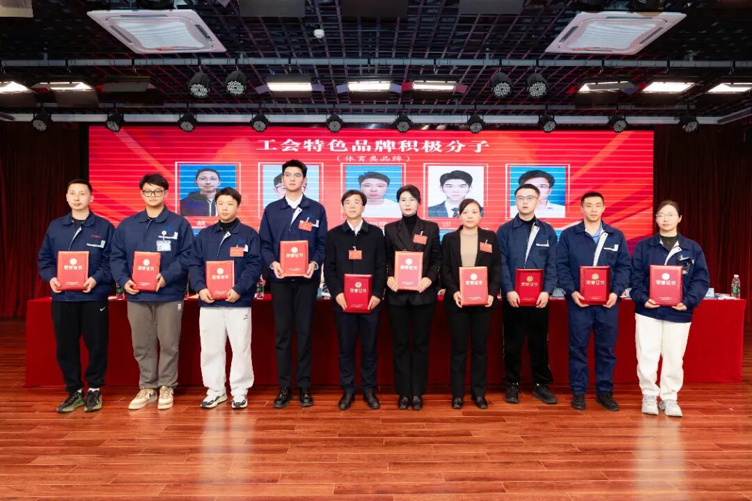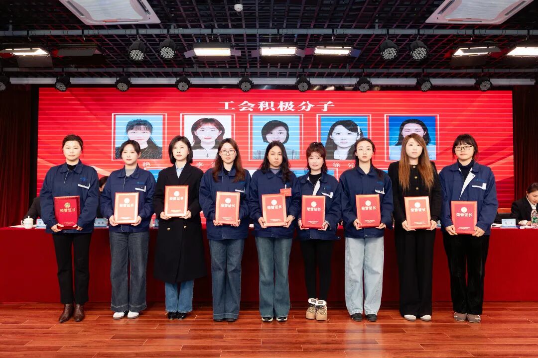 联环股份党委副书记、董事长钱振华宣读了《关于表彰2025年度优秀分会、优秀工会干部、工会积极分子和工会特色品牌积极分子的决定》,主席团成员为6个优秀分会颁发了荣誉牌,为12名优秀工会干部、36名工会积极分子以及21名工会特色品牌积极分子颁发了荣誉证书。
